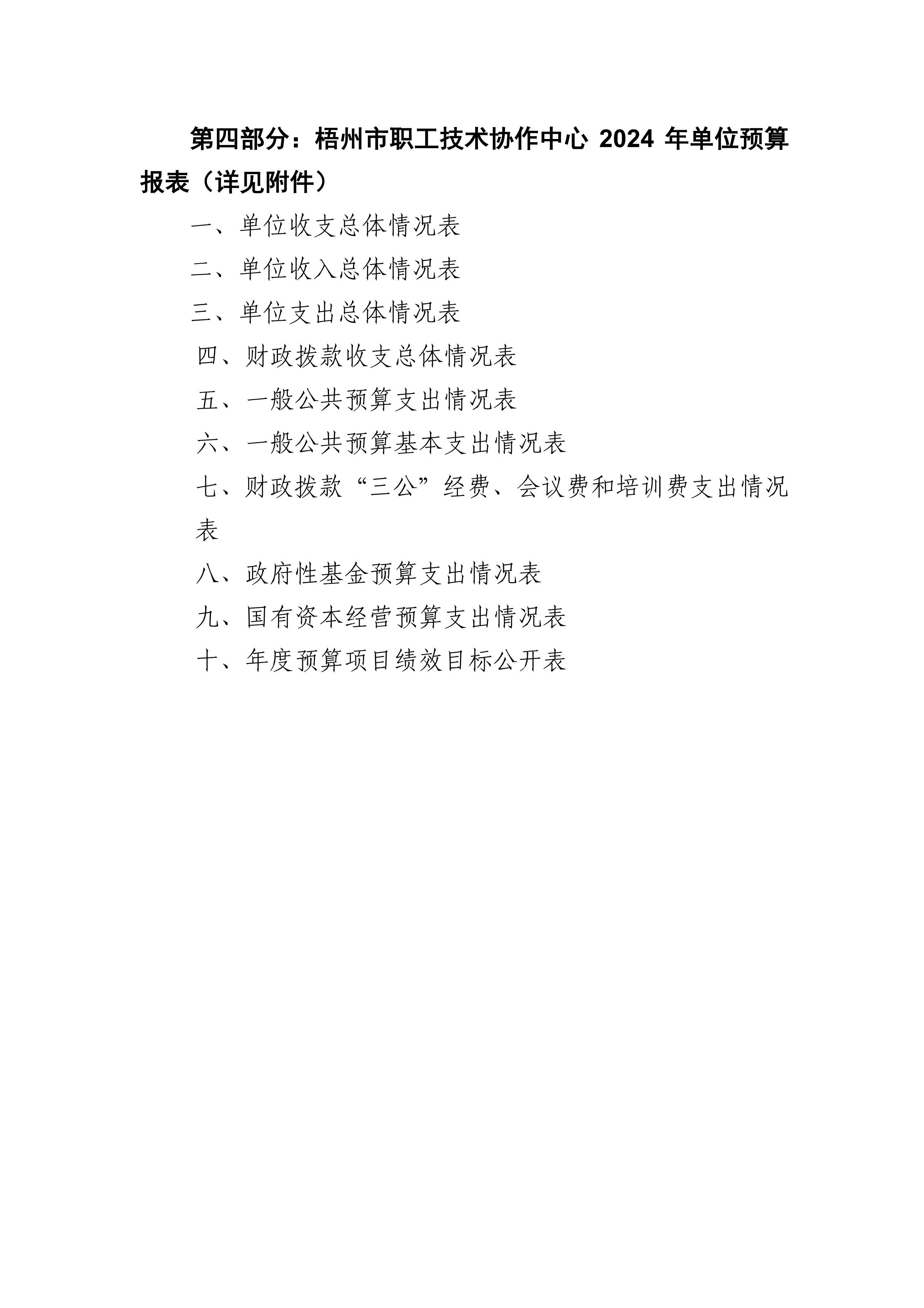 [單位預(yù)算]梧州市職工技術(shù)協(xié)作中心2024年單位預(yù)算及“三公”經(jīng)費(fèi)預(yù)算情況說(shuō)明