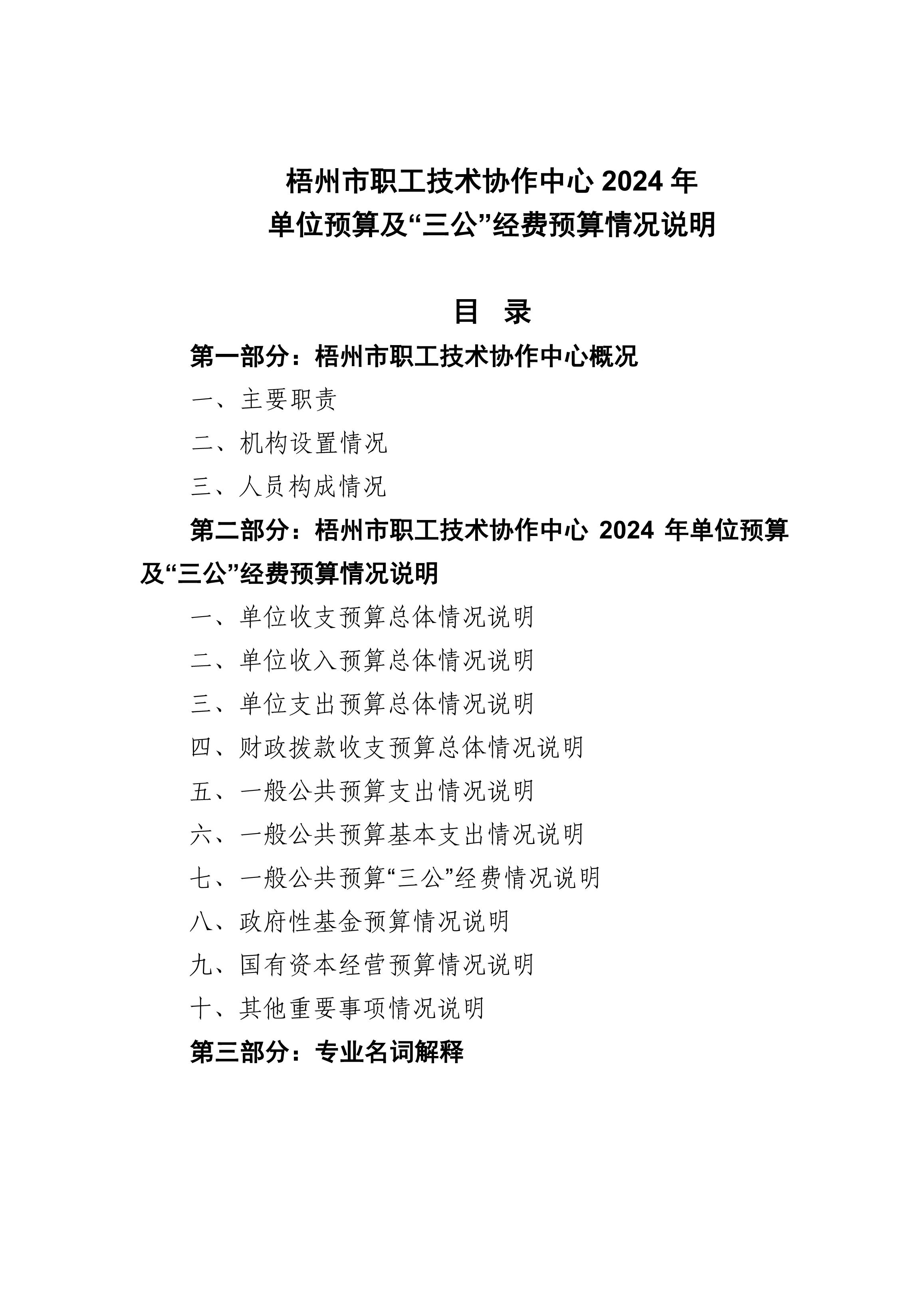 [單位預(yù)算]梧州市職工技術(shù)協(xié)作中心2024年單位預(yù)算及“三公”經(jīng)費(fèi)預(yù)算情況說(shuō)明.pdf