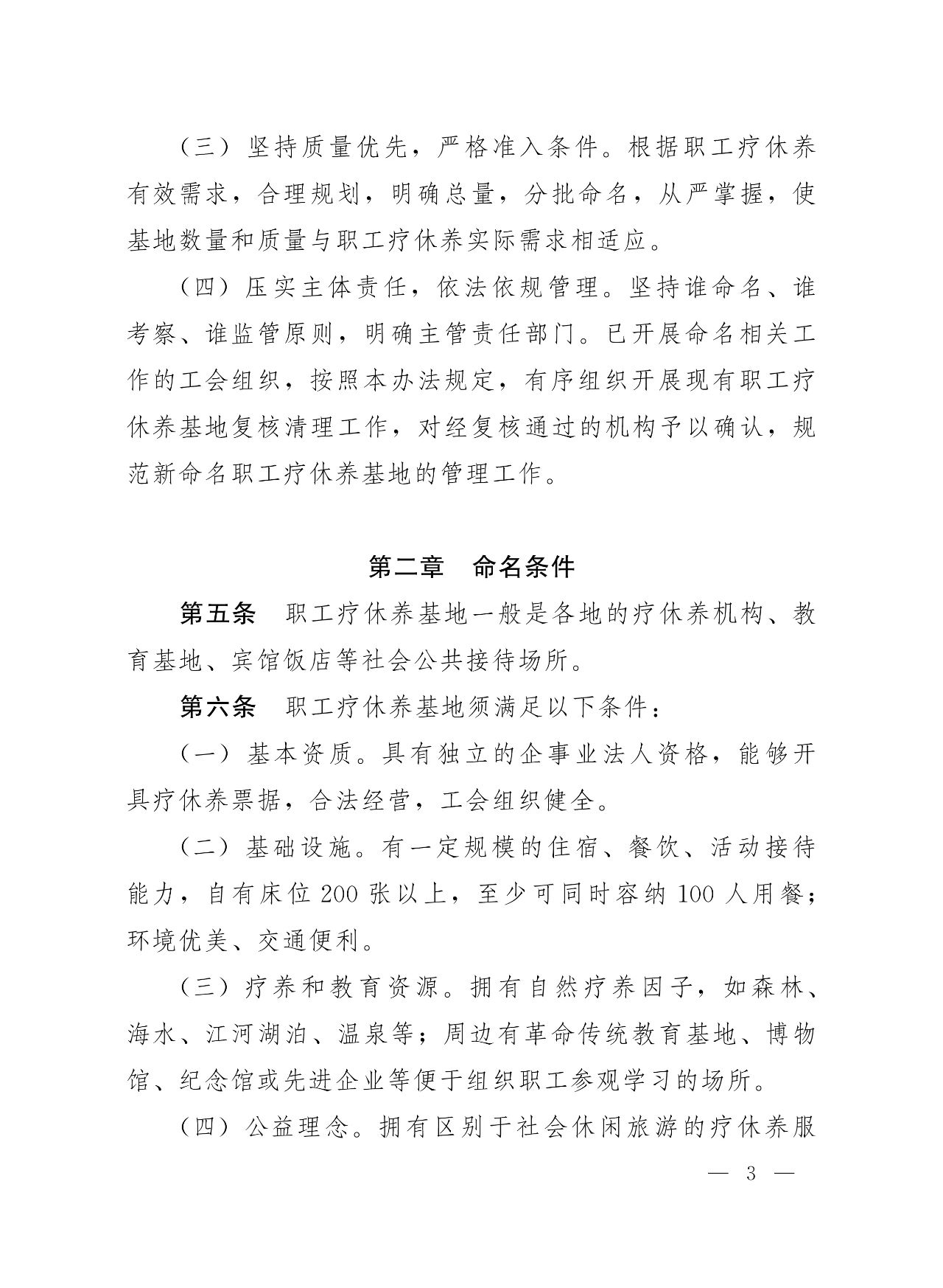 《辦法》明確,職工療休養(yǎng)基地是工人療休養(yǎng)院功能的補(bǔ)充和拓展,由各省級(jí)(含)以上總工會(huì)根據(jù)工作需要命名?;孛麘?yīng)堅(jiān)持立足功能定位,突出療休養(yǎng)功能;利用社會(huì)資源,服務(wù)職工群眾;堅(jiān)持質(zhì)量?jī)?yōu)先,嚴(yán)格準(zhǔn)入條件;壓實(shí)主體責(zé)任,依法依規(guī)管理的原則。
